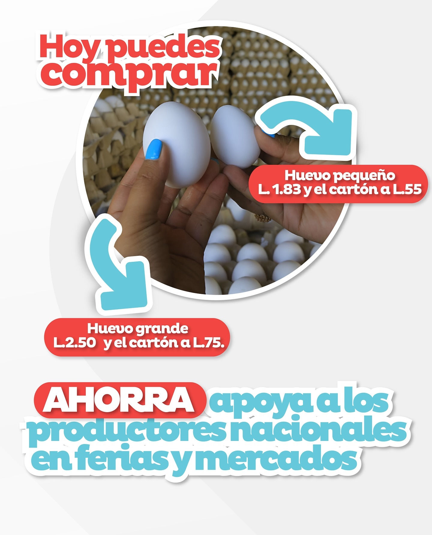 El cartón de huevos pasó de L.180 a L.75. Si compras en ferias o mercados, apoyas a nuestros productores nacionales, ahorras dinero y consumes productos de mejor calidad.